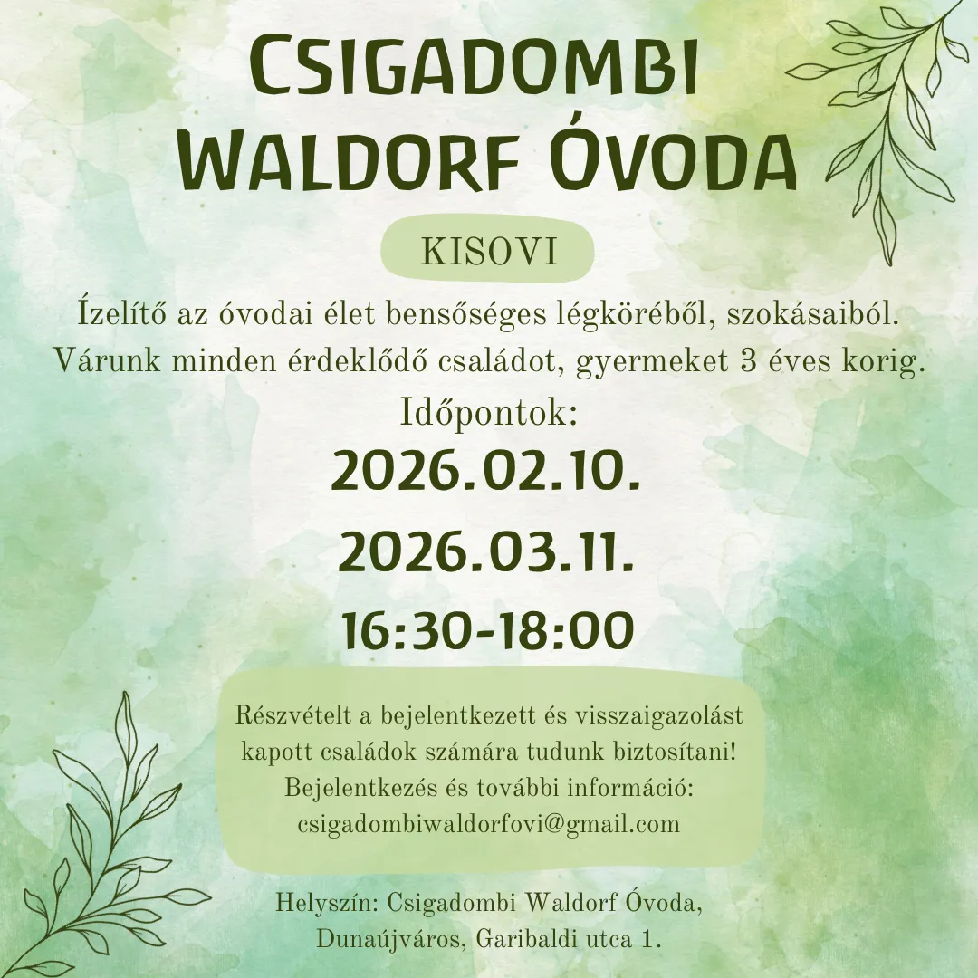 Bejelentkezés és további információ: csigadombiwaldorfovi@gmail.com